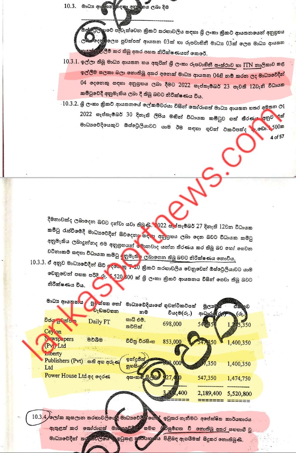 ශ්රී ලංකා ක්රිකට් ආයතනය මසුරු නැතිව වියදම් කරන තැනක් බව දැන් ප්රසිද්ධ කරුණක්. ක්රීඩා සමාජ නිලධාරීන්ට, දිස්ත්රික් සංගම් නිලධාරීන්ට, නෑයන්ට, ලෝබ නැතිව ලක්ෂ ගණනින් පඩි ගෙවන ක්රිකට් ආයතනය දැන් ක්රිකට් ආවරණය කරන මාධ්යවේදීන්ටත් පඩ් ගෙවන්න පටන් අරන්.
